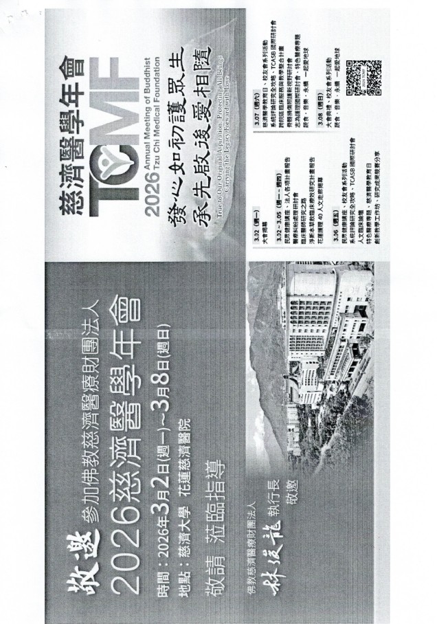 本院將於 115年3月2日(一)至3月8日(日) 舉辦「2026 TCMF 慈濟醫學年會」。
